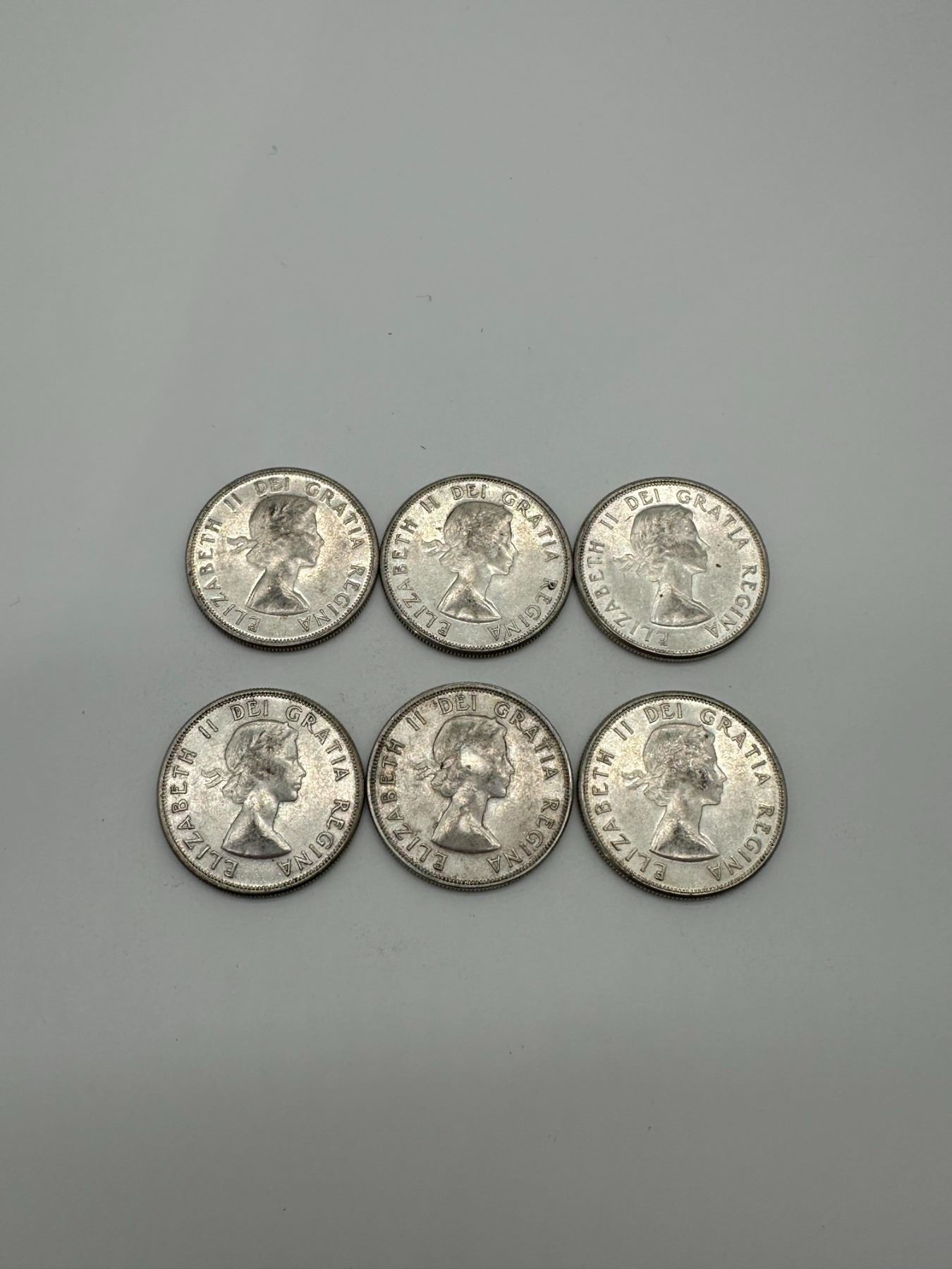 Lot 27 Canada Silver 50 Cents Lot (6 Coins, 1950s–1960s)