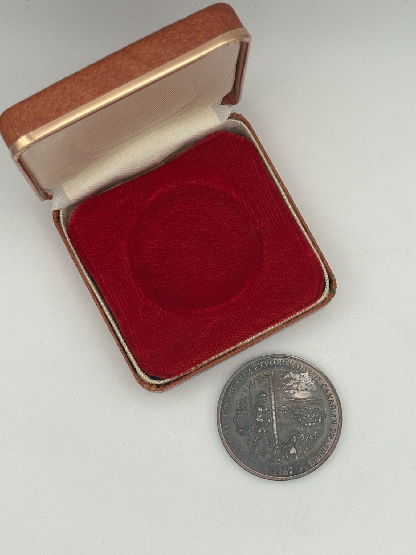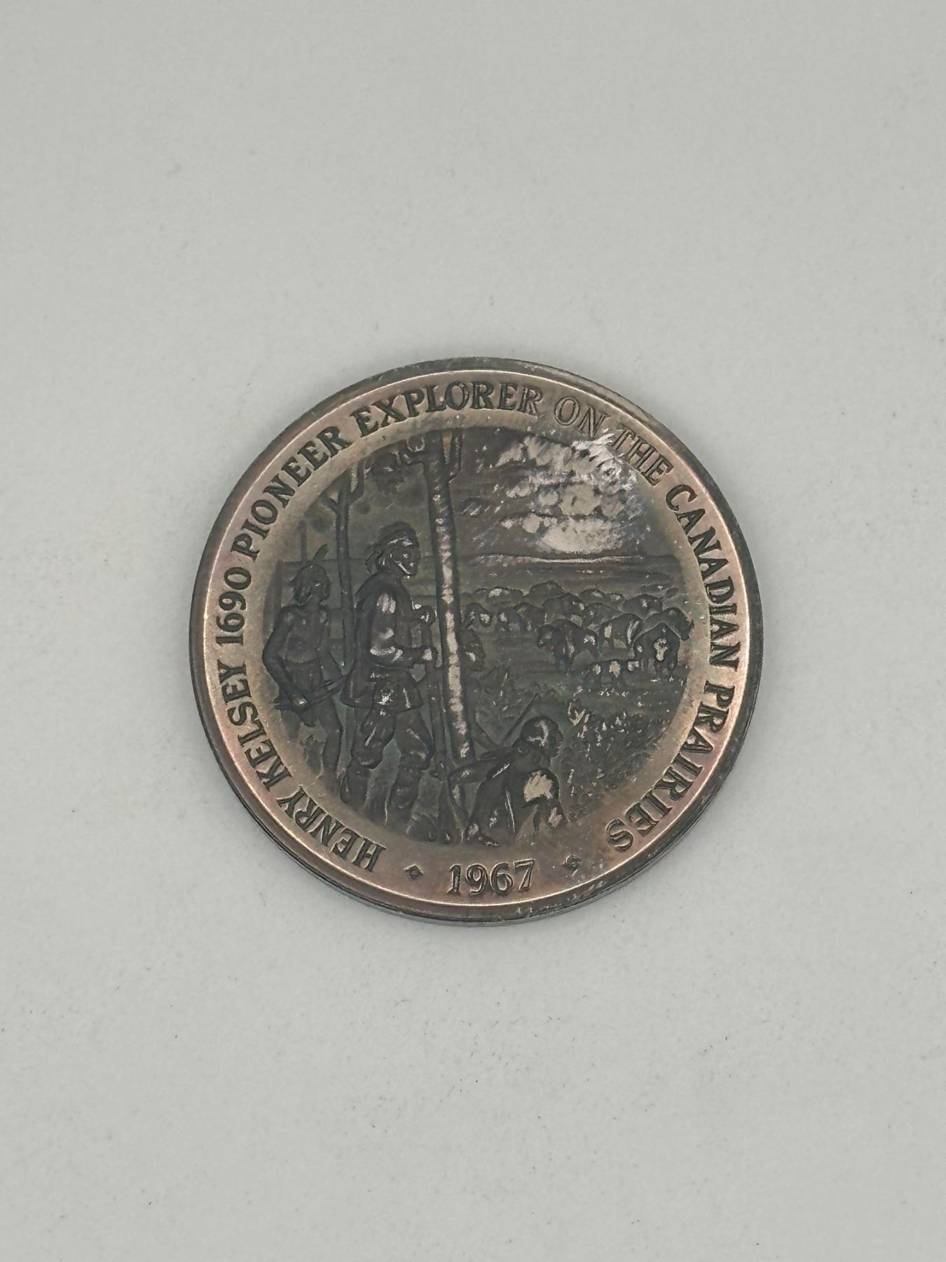 1967 Sherritt 'Pure Nickel' commemorative medallion, Hudson’s Bay explorer design, Fort Saskatchewan, includes case.