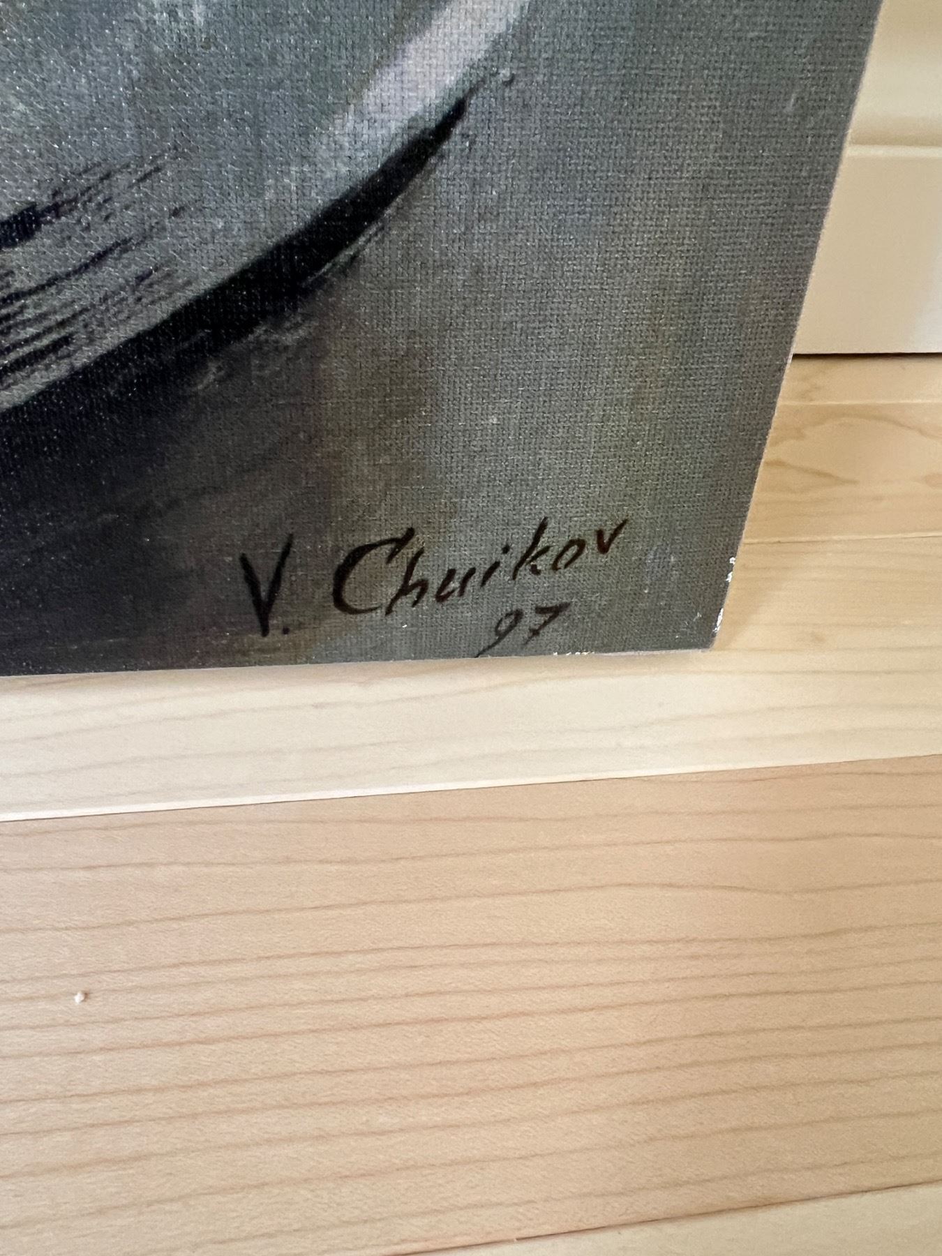 Each one is 35"L x 35"W, one signed by V. Cherikov 97'