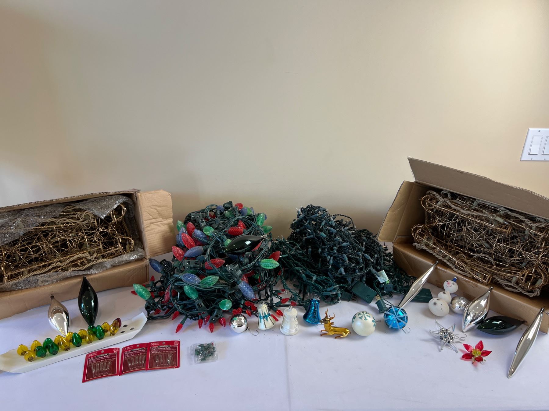 Includes two lighted reindeer figures 17 3/4" x 8 1/4" x 10 5/8" (open boxes), Lights not tested