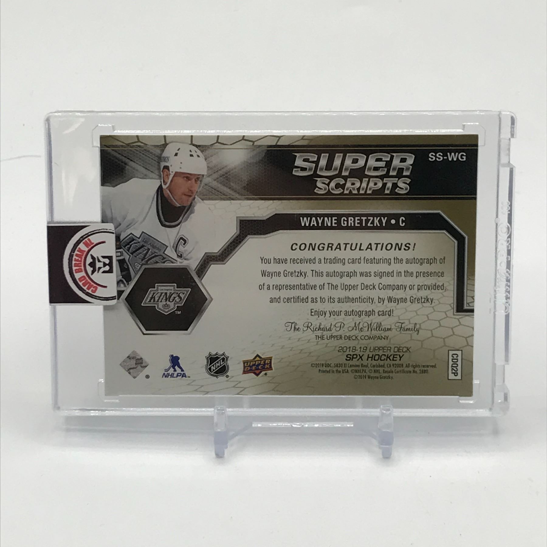 Lot 225 2018-19 UPPER DECK SPX HOCKEY SUPER SCRIPTS WAYNE GRETZKY SIGNED HOCKEY TRADING CARD