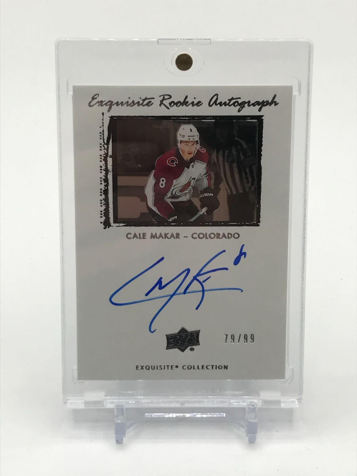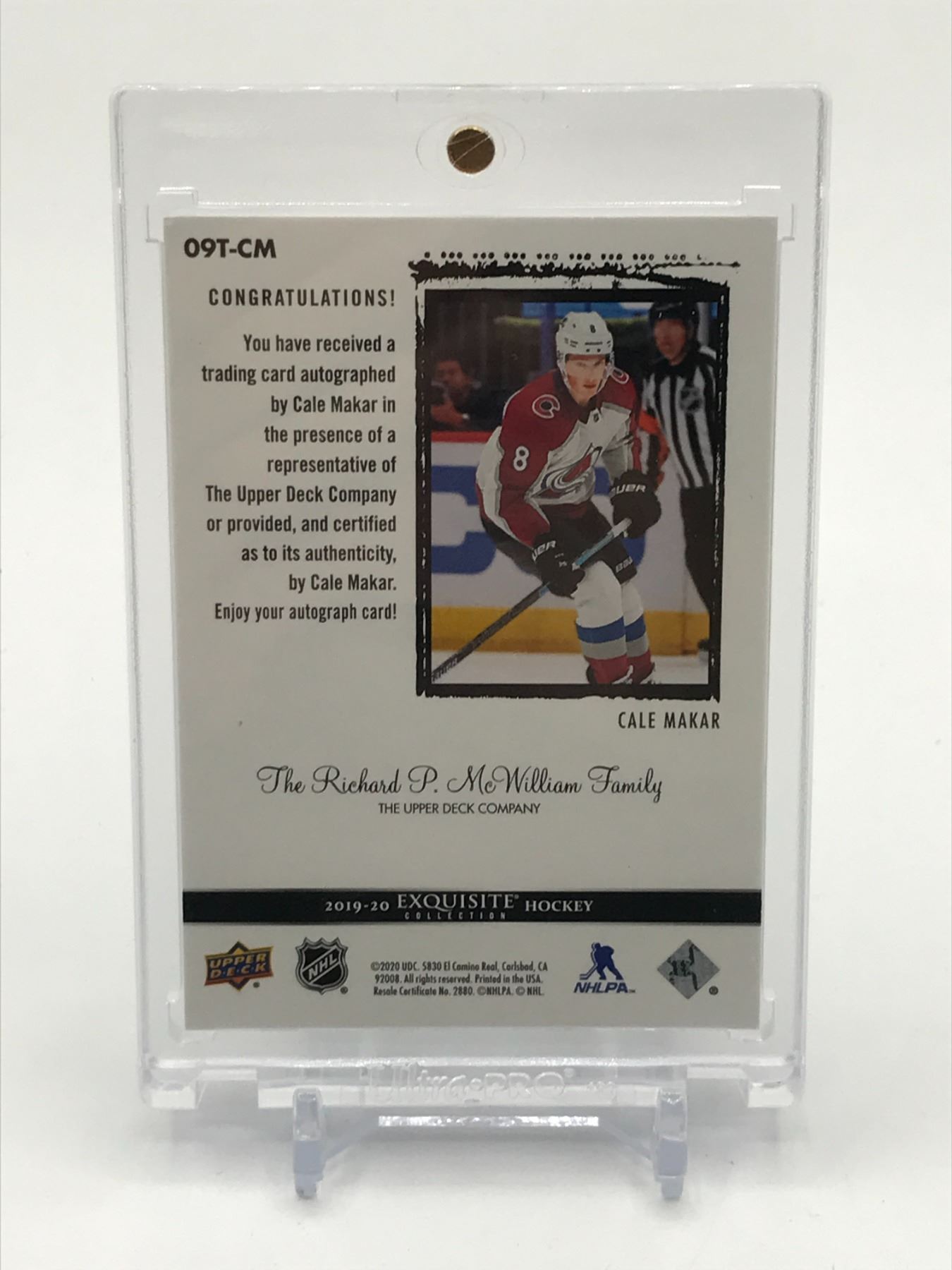 Lot 238 2019-20 UPPER DECK EXQUISITE HOCKEY CALE MAKAR SIGNED TRADING CARD 79/99