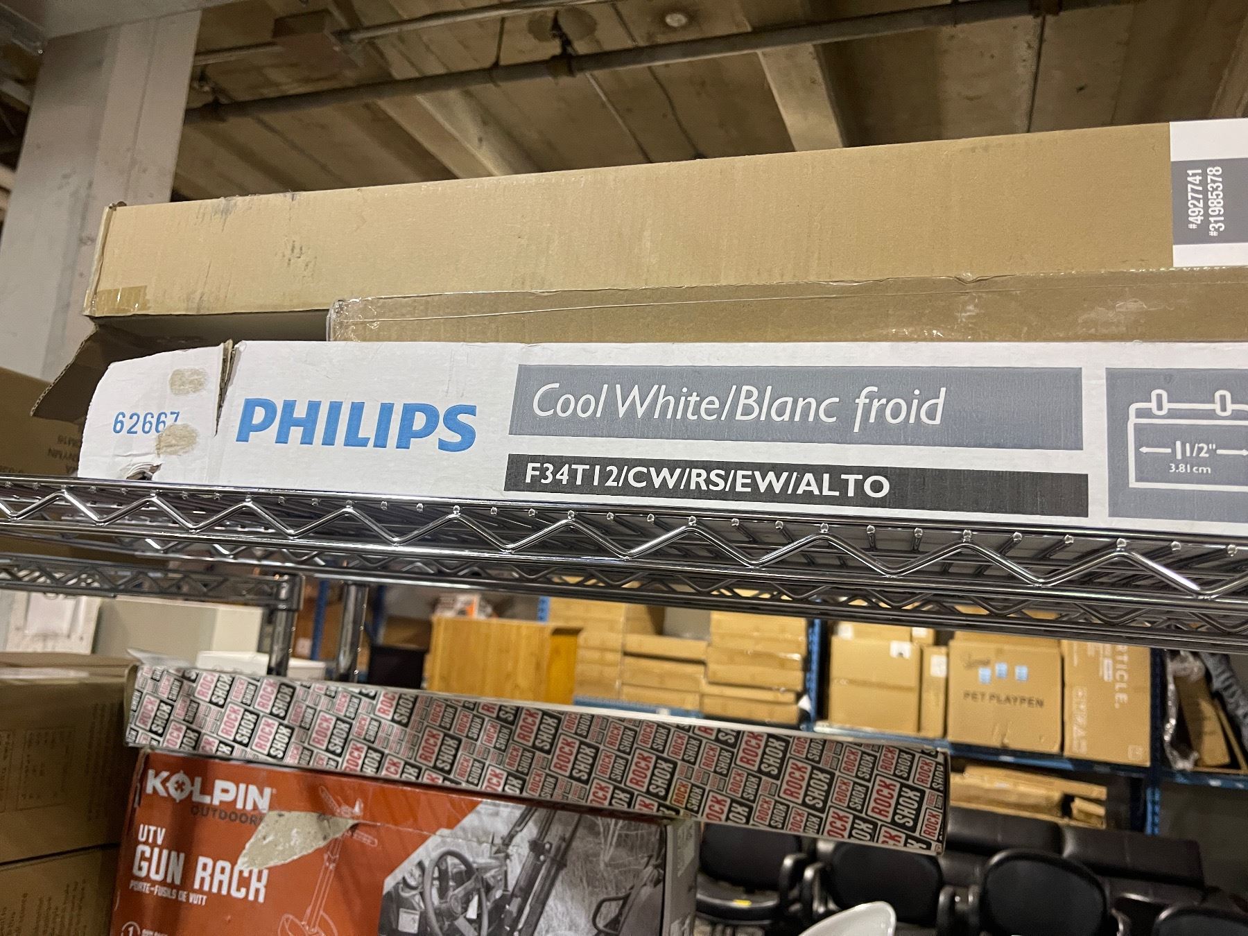 2-Shelf of Assorted Merchandise - Envy Wheels, Kolpin UTV Gun Rack, Philips Cool White Light Bulbs, and More