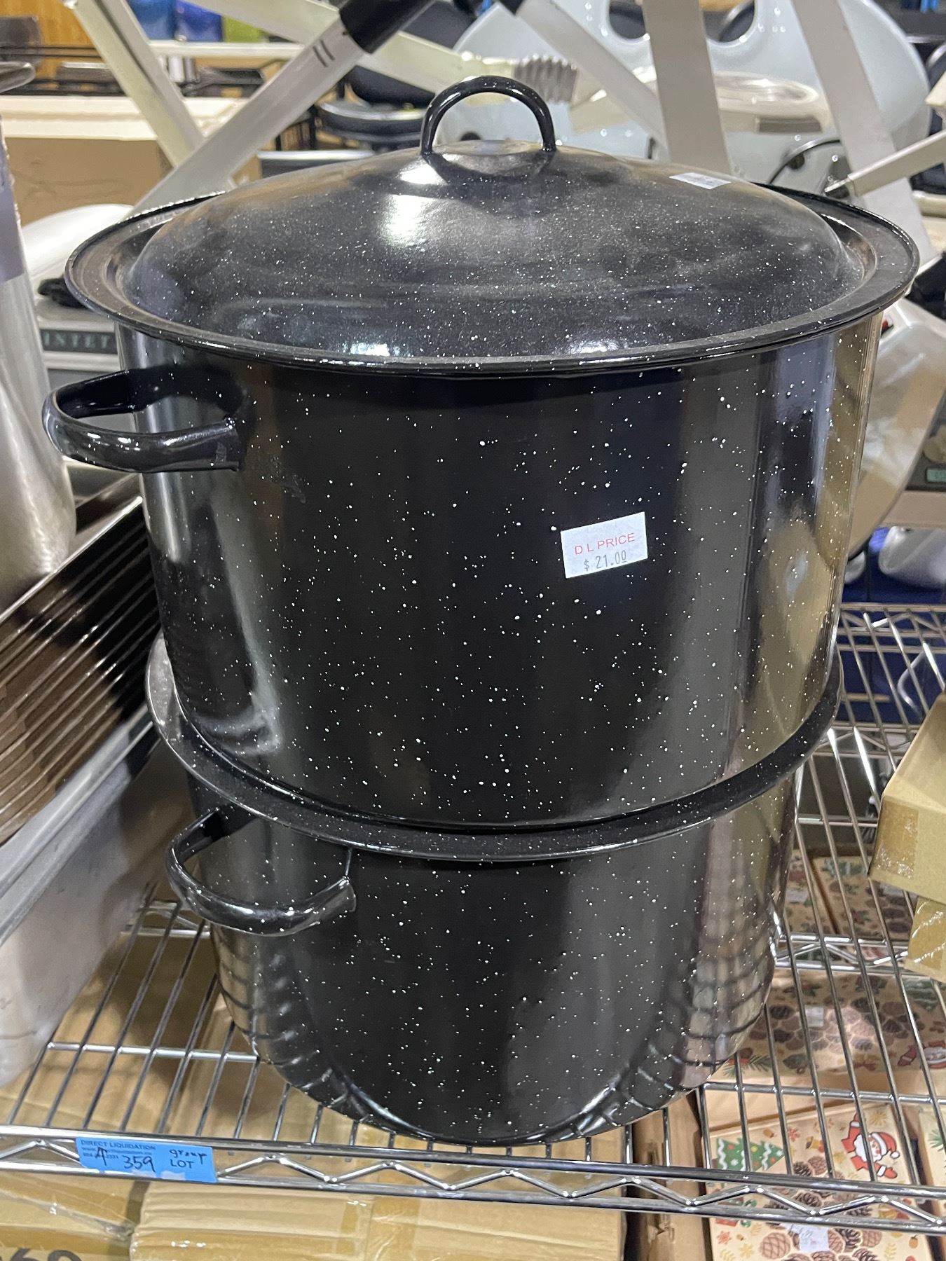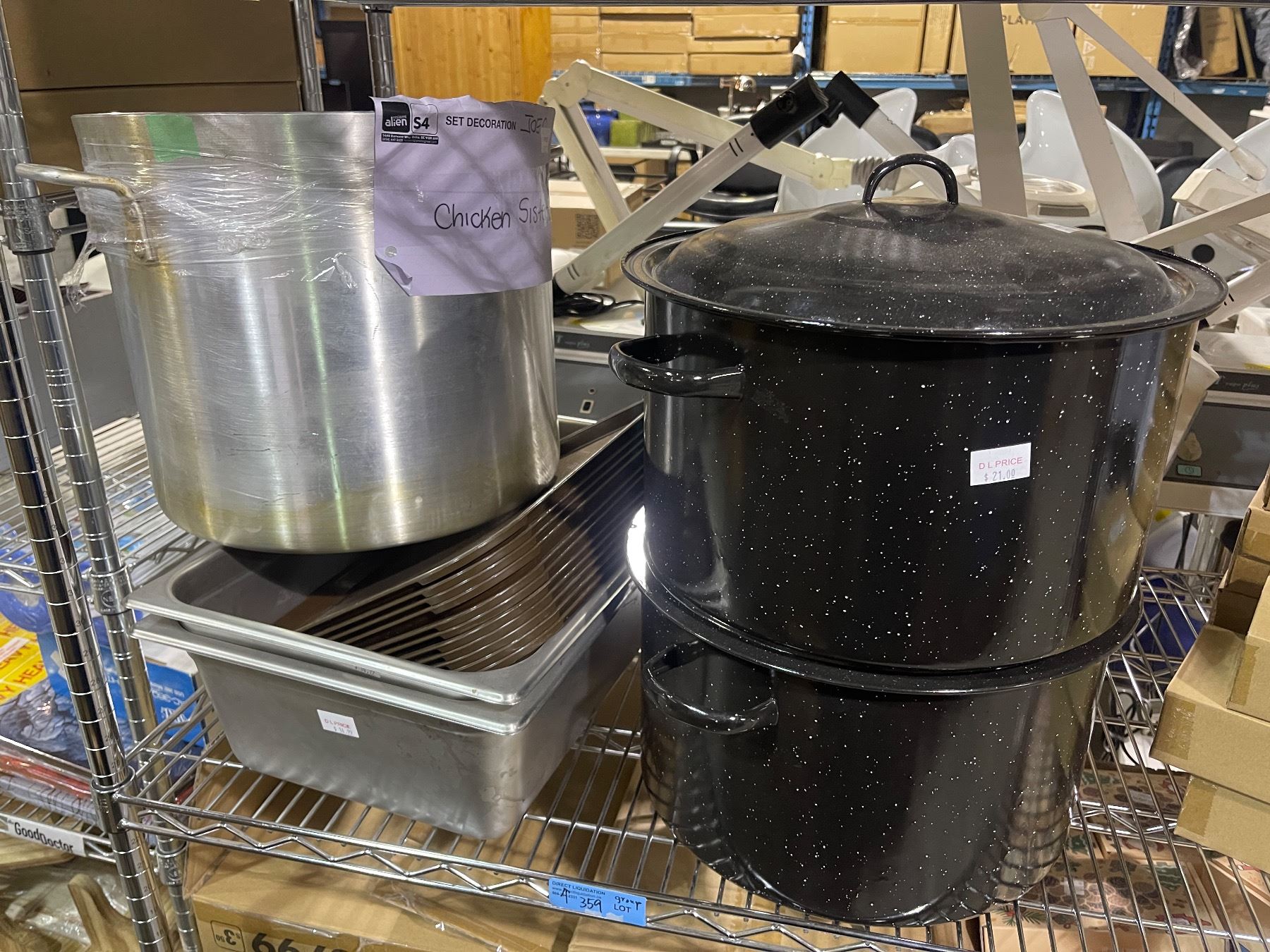 Lot 359 Group of Large Stock Pots, and Baking Trays, and Serving Trays