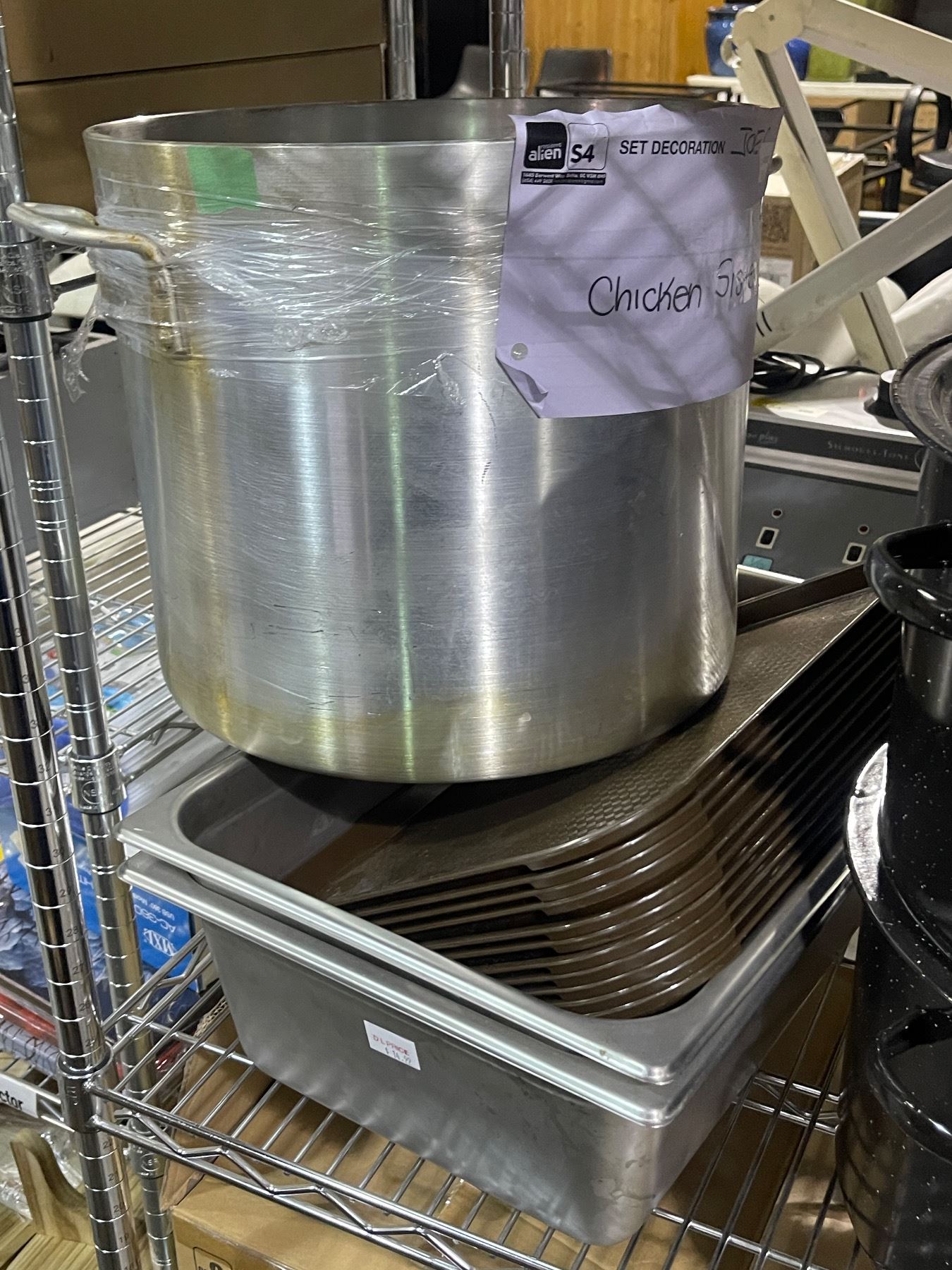Group of Large Stock Pots, and Baking Trays, and Serving Trays