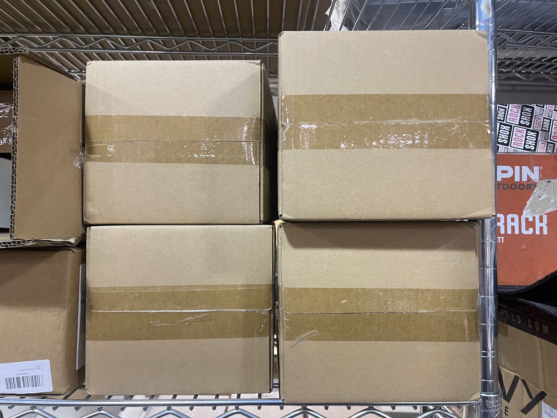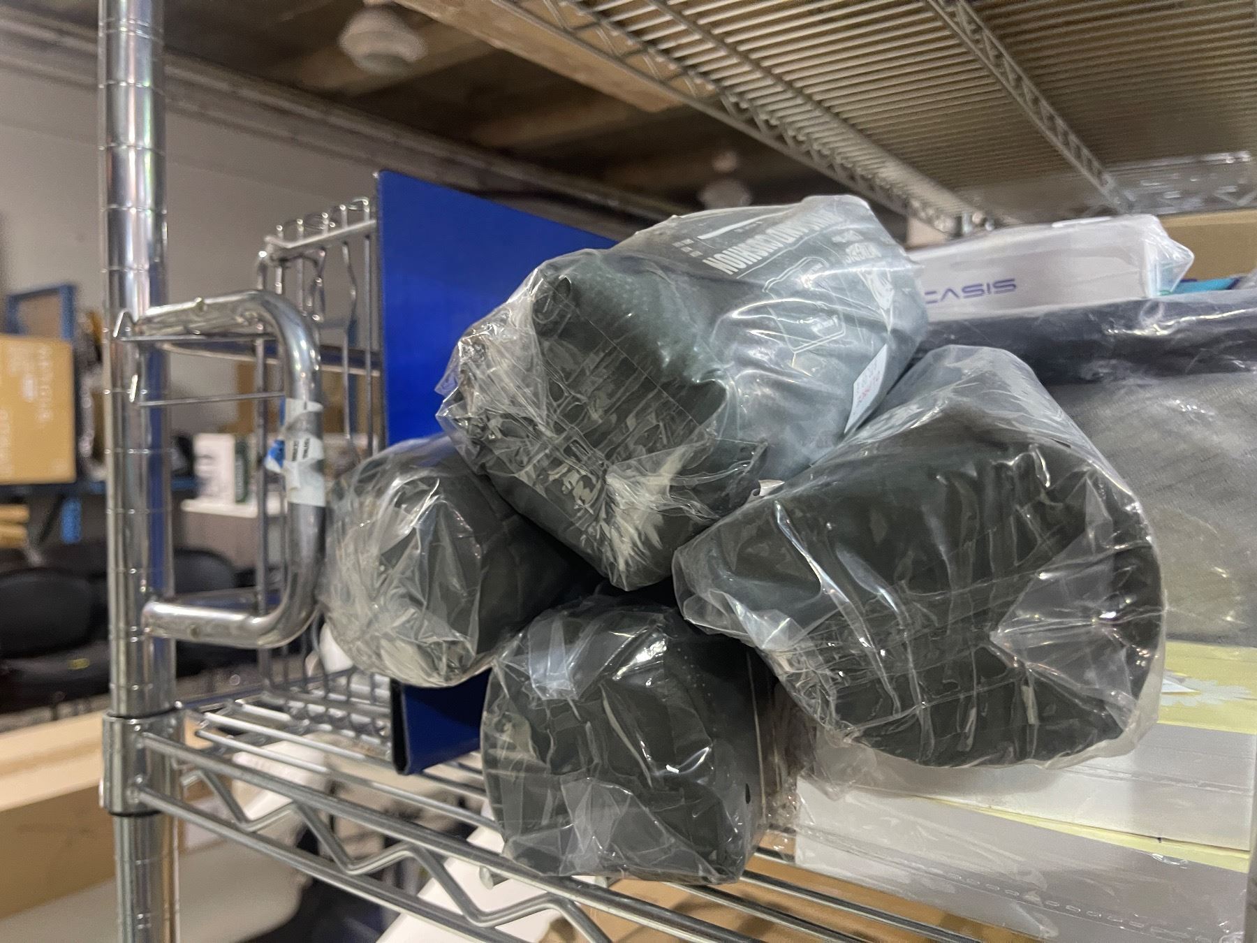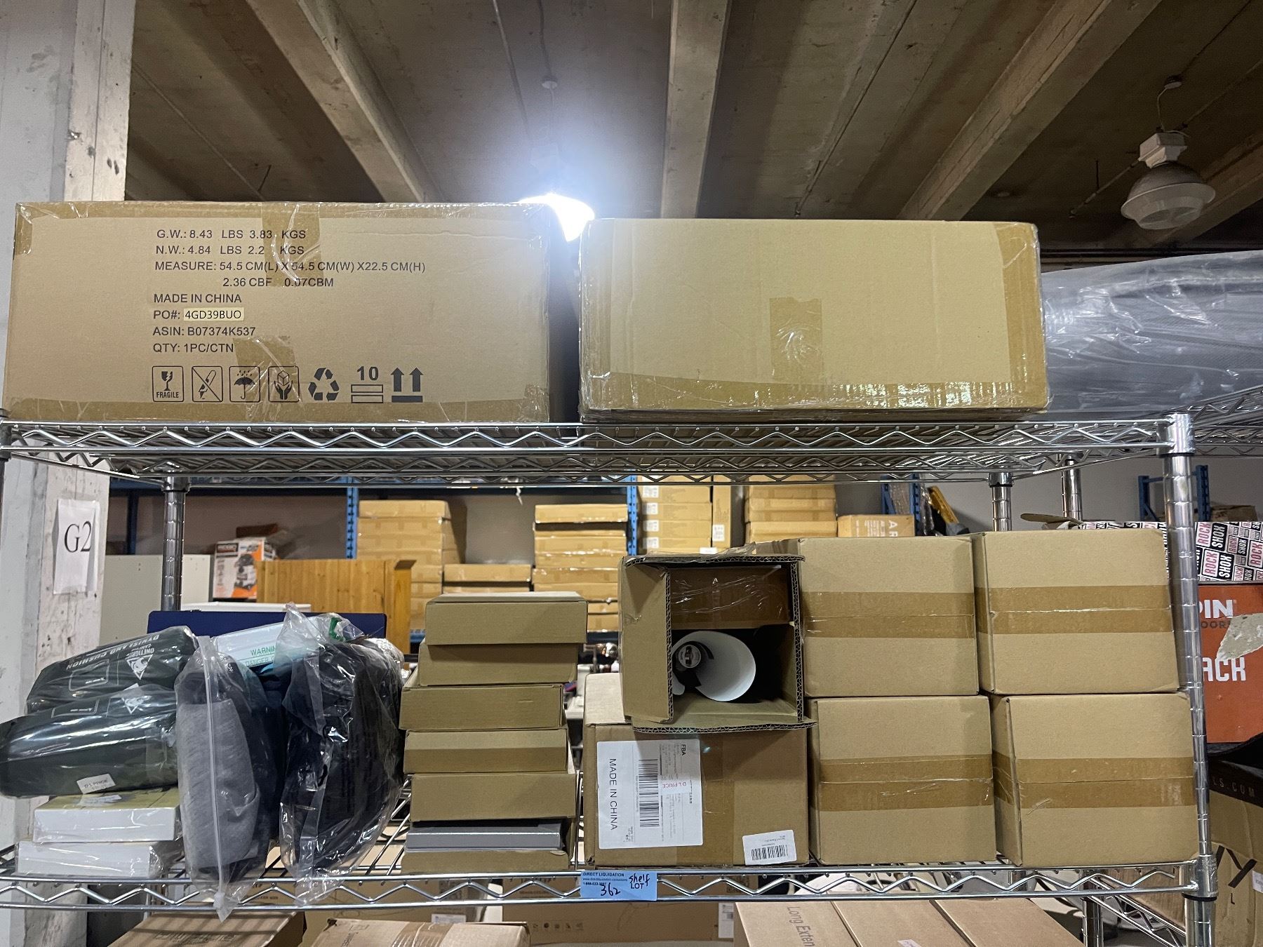 Full Shelf of Boxed Picture Frames, Lighting, Camping Cushions, and More