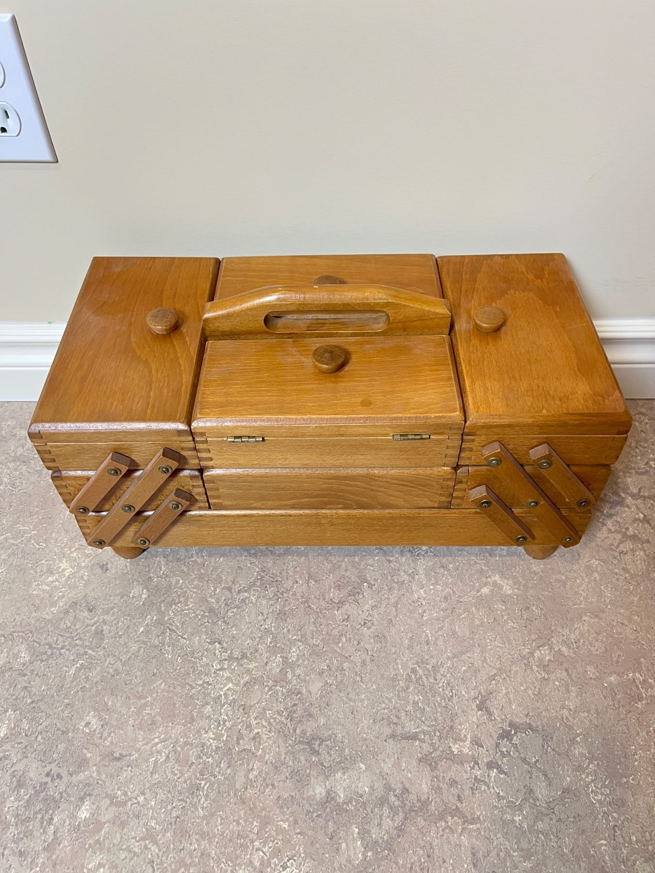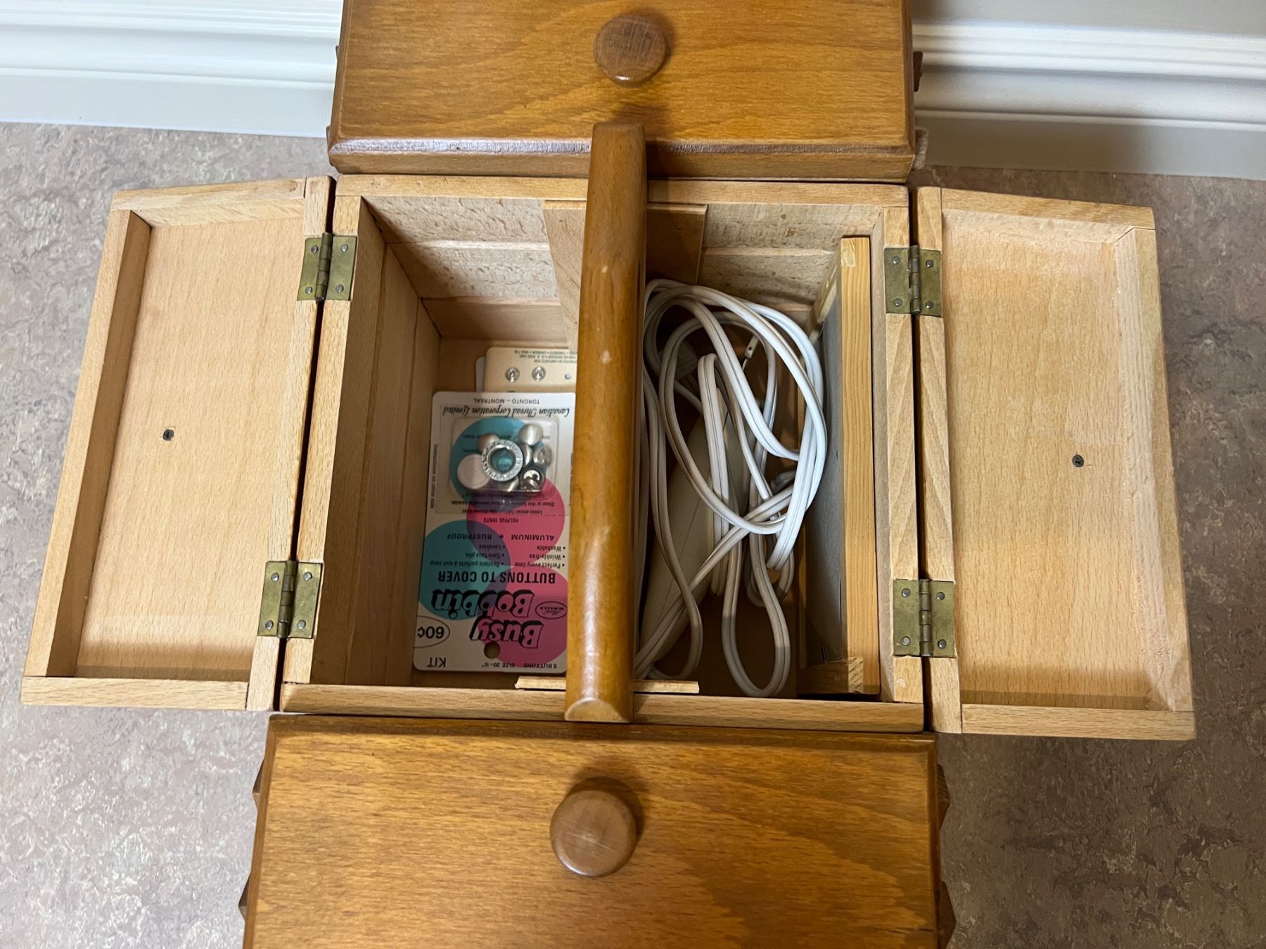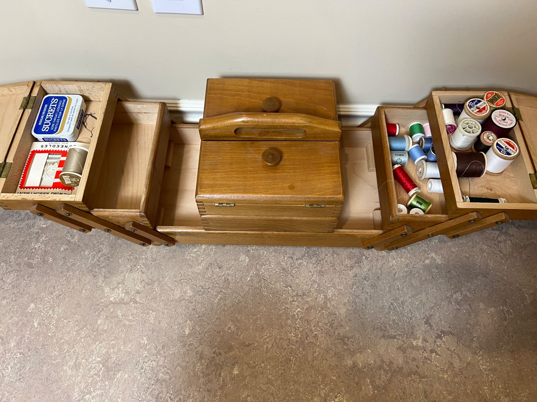 Lot 98 Wooden Sewing Box with Content