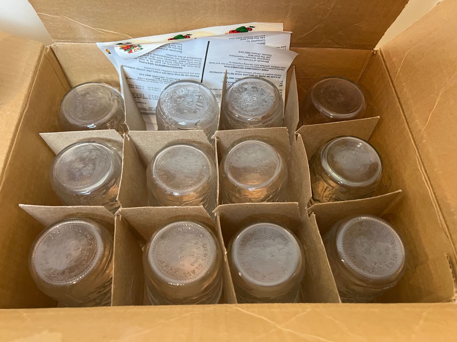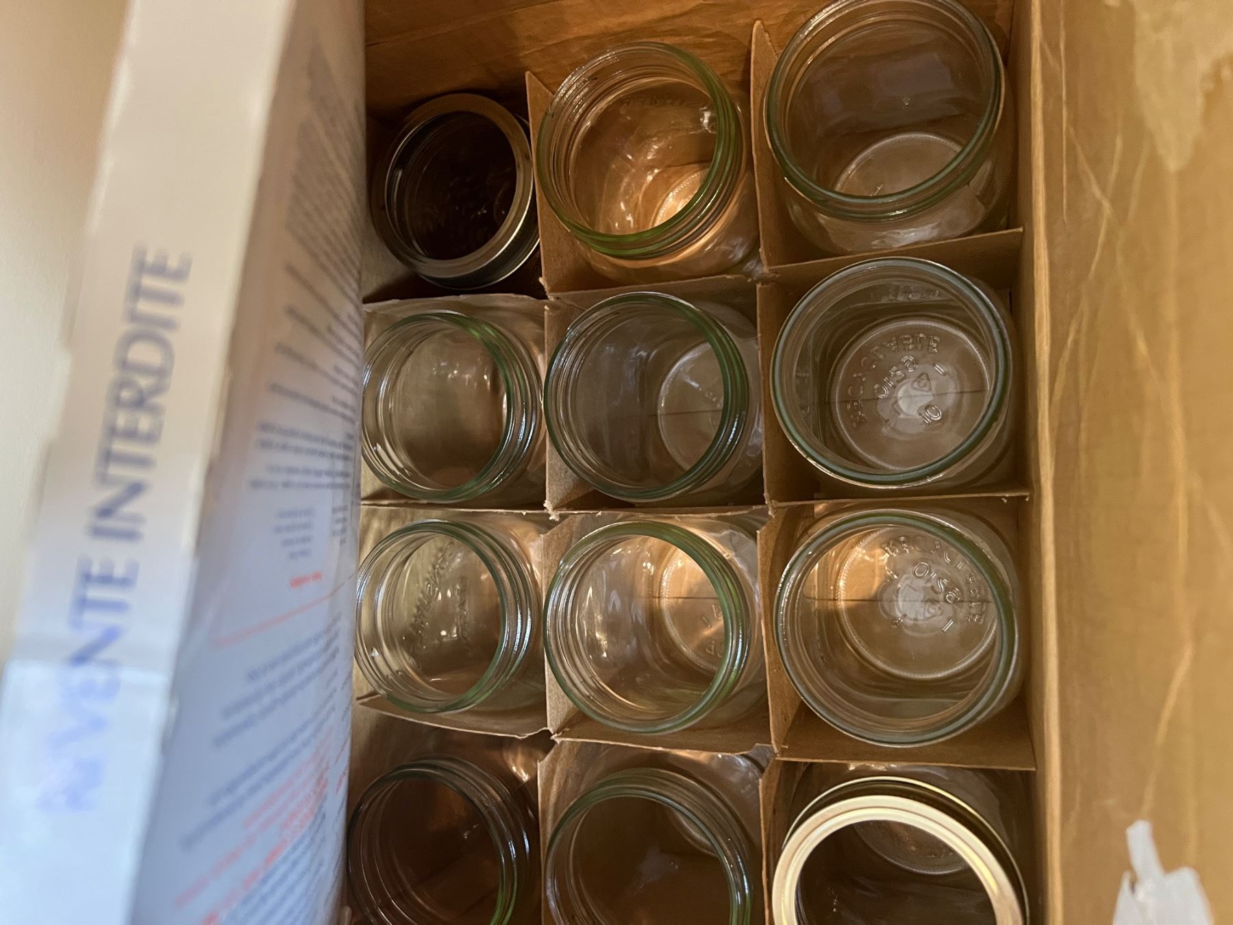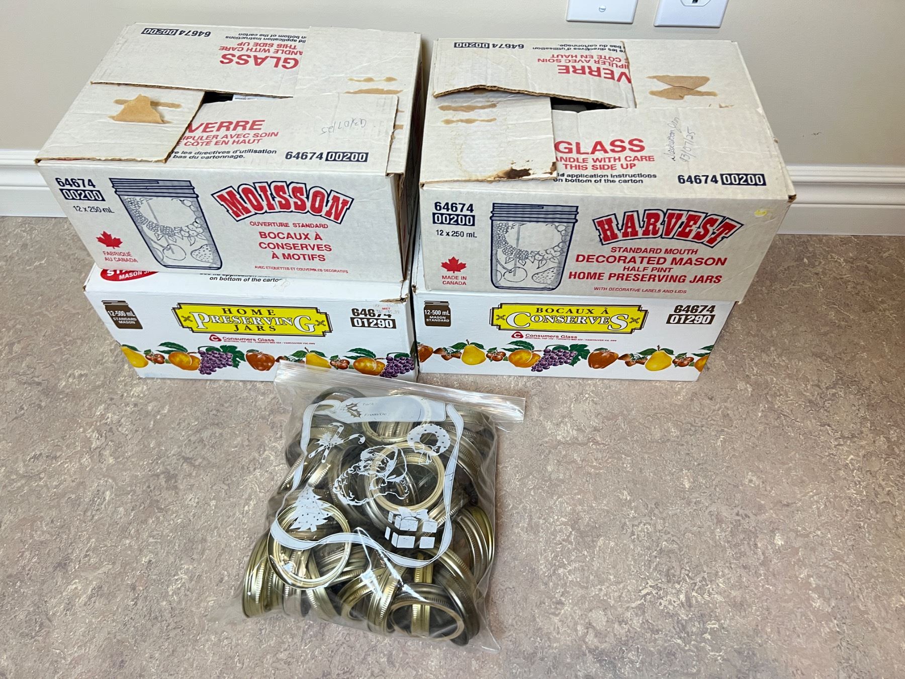 Includes four open boxes of new and used jars, 250ml-500ml