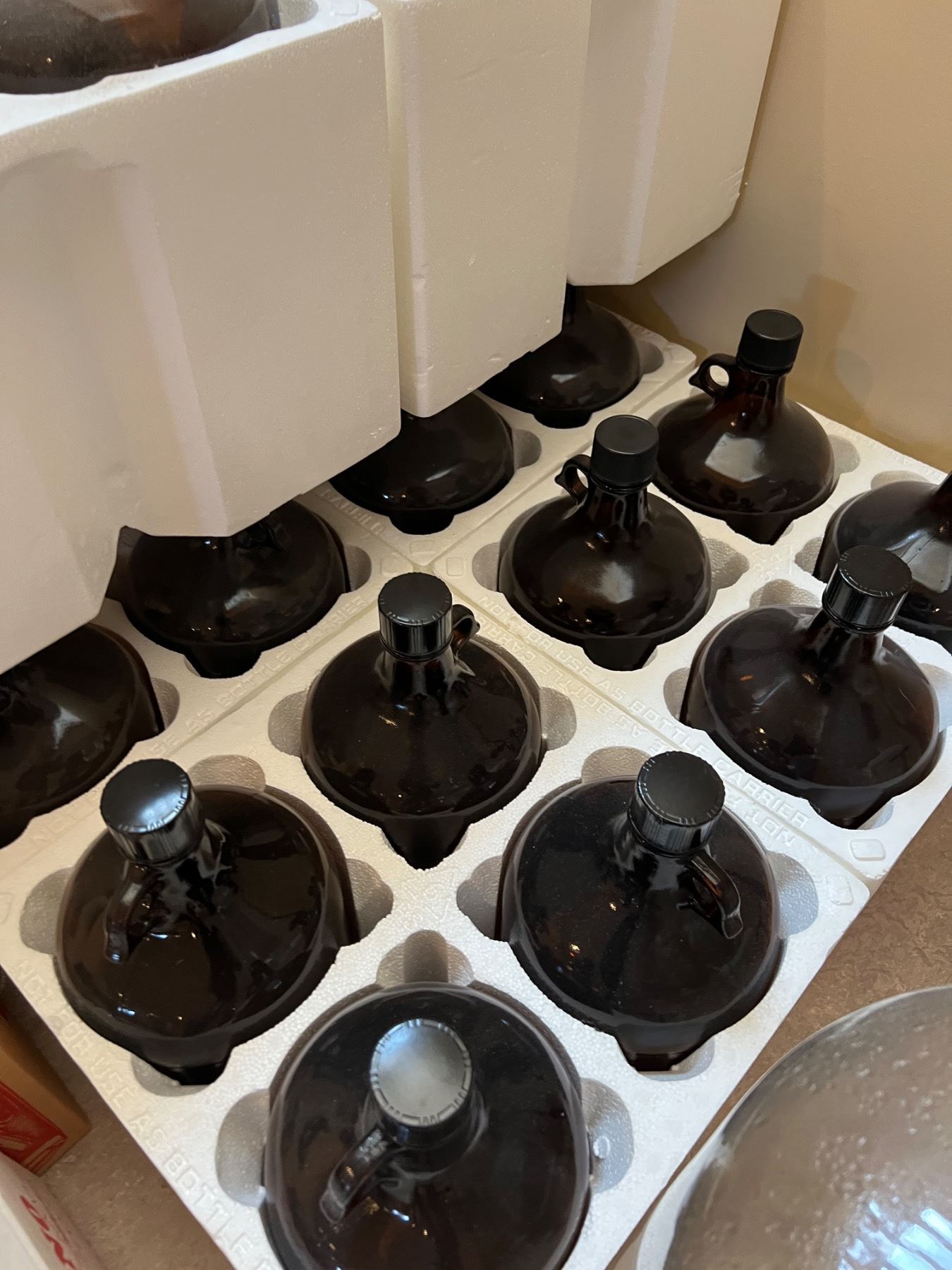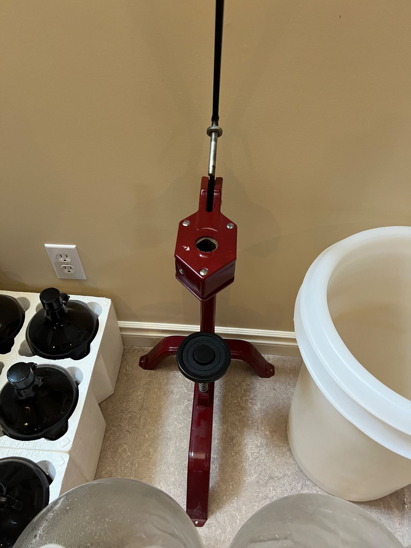 Includes a bottle corker, various glass jugs and bottles, amber glass bottles are 13.5"H, and more