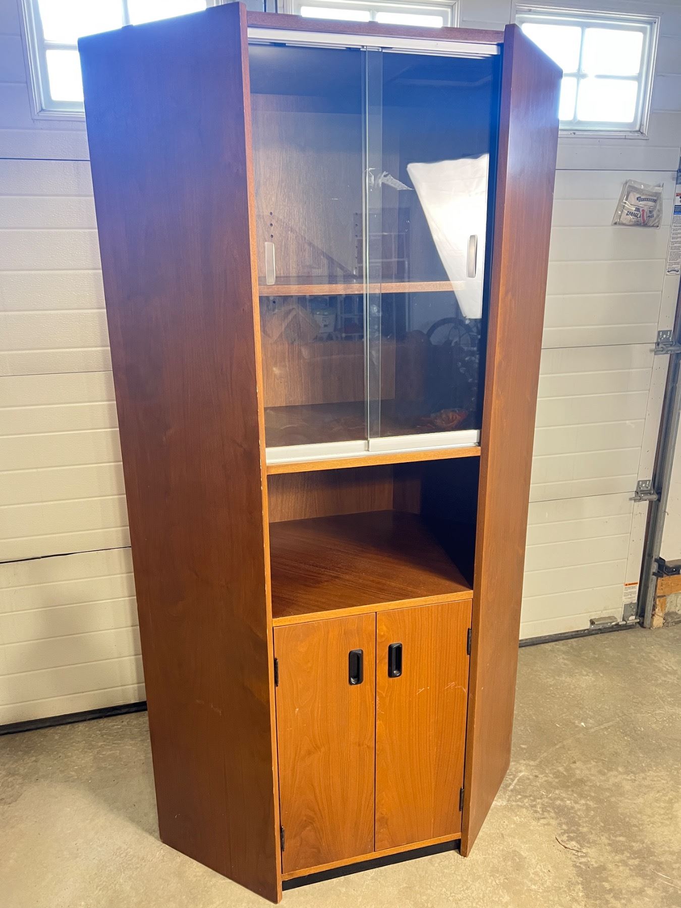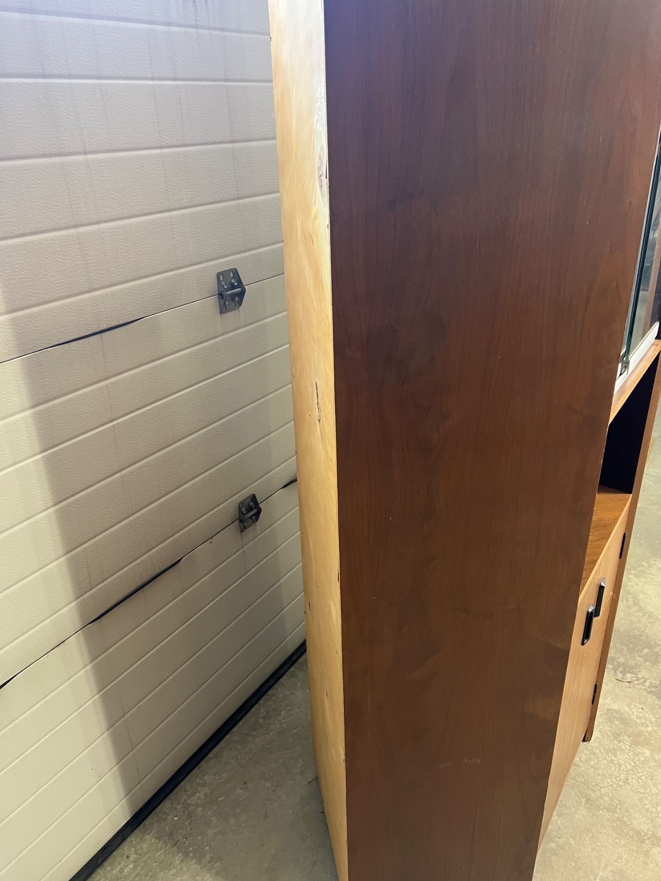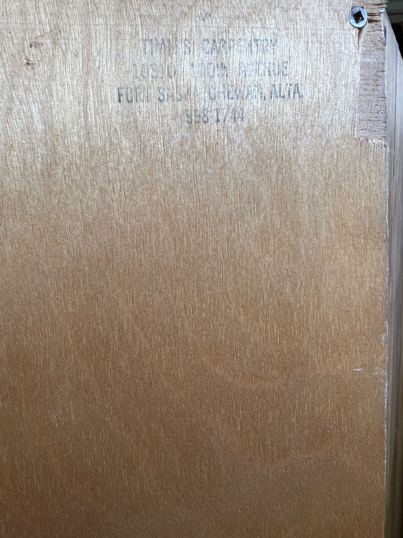 Has some scuffs and wear, by Timm's Carpentry, 38"L x 20"D x 70"H, has a water stain on the backside