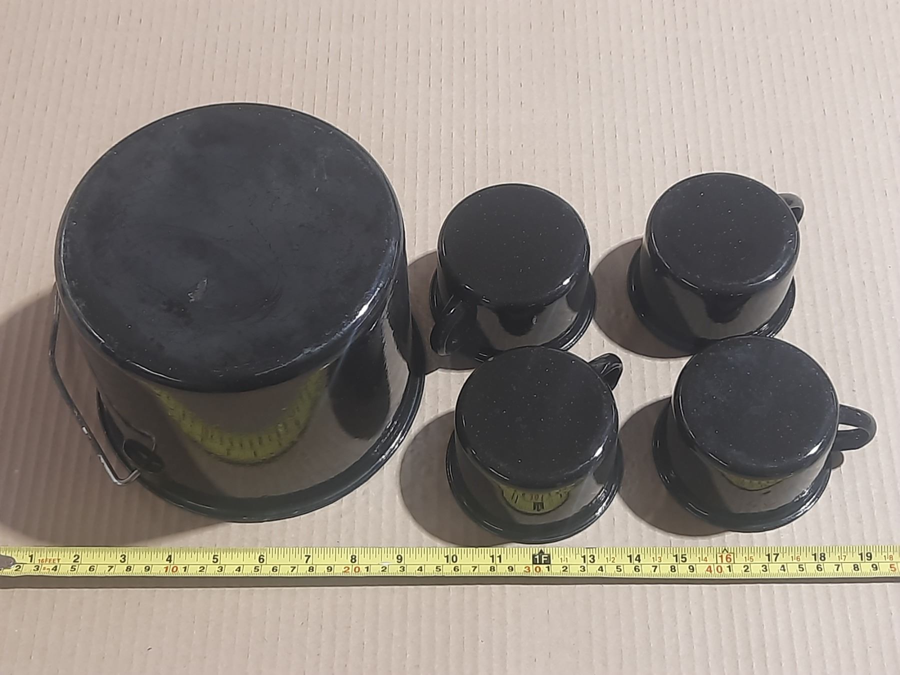 Lot 1480 1480-Enamel pot and 4 matching cups