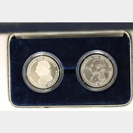 COMMEMORATIVE, 100 FRANC COINS, PROOF, HONORING A HERO OF THE AMERICAN REVOLUTION ORIGINAL MINT PACKAGING AND WITH CERTIFICATE