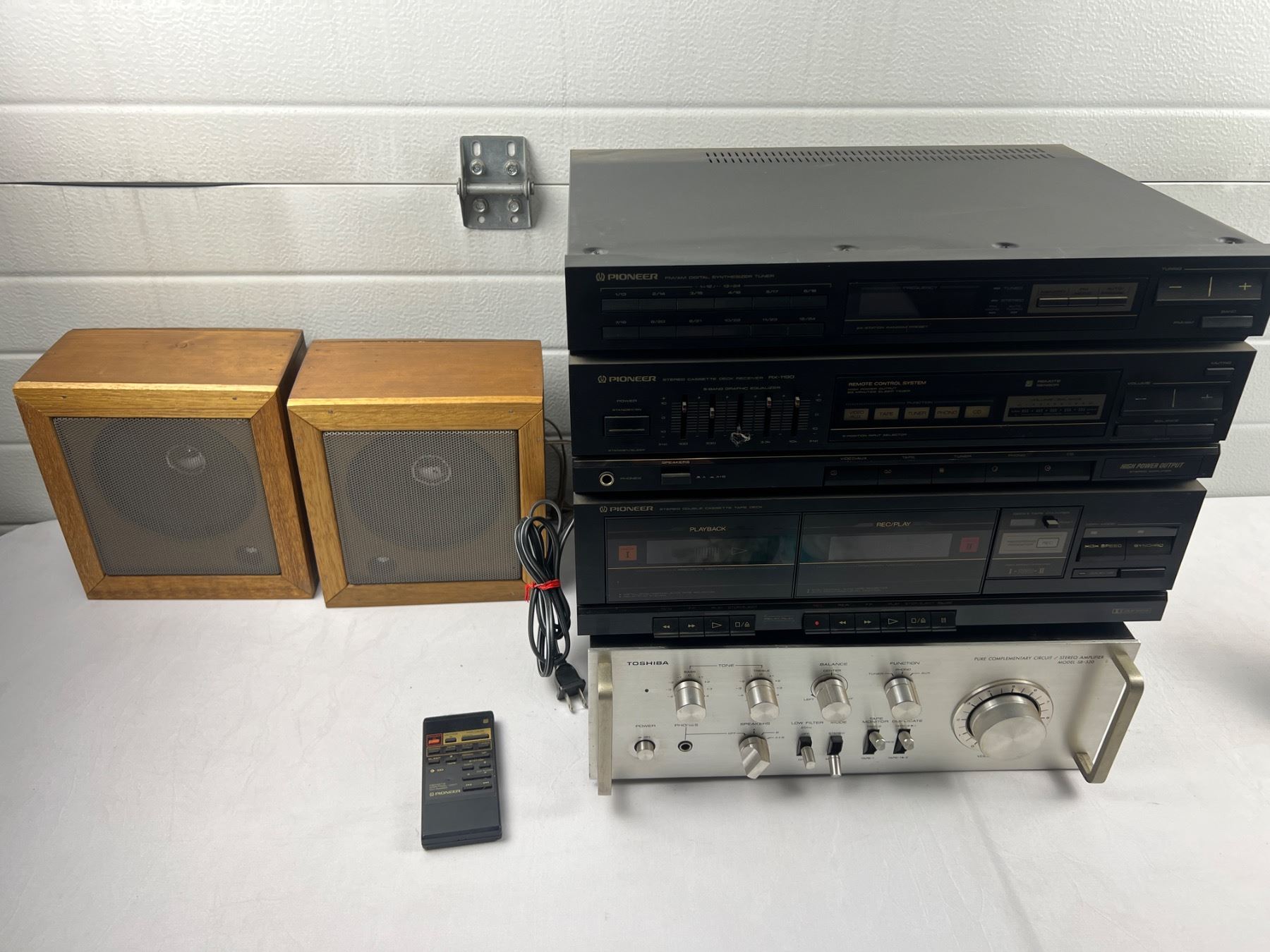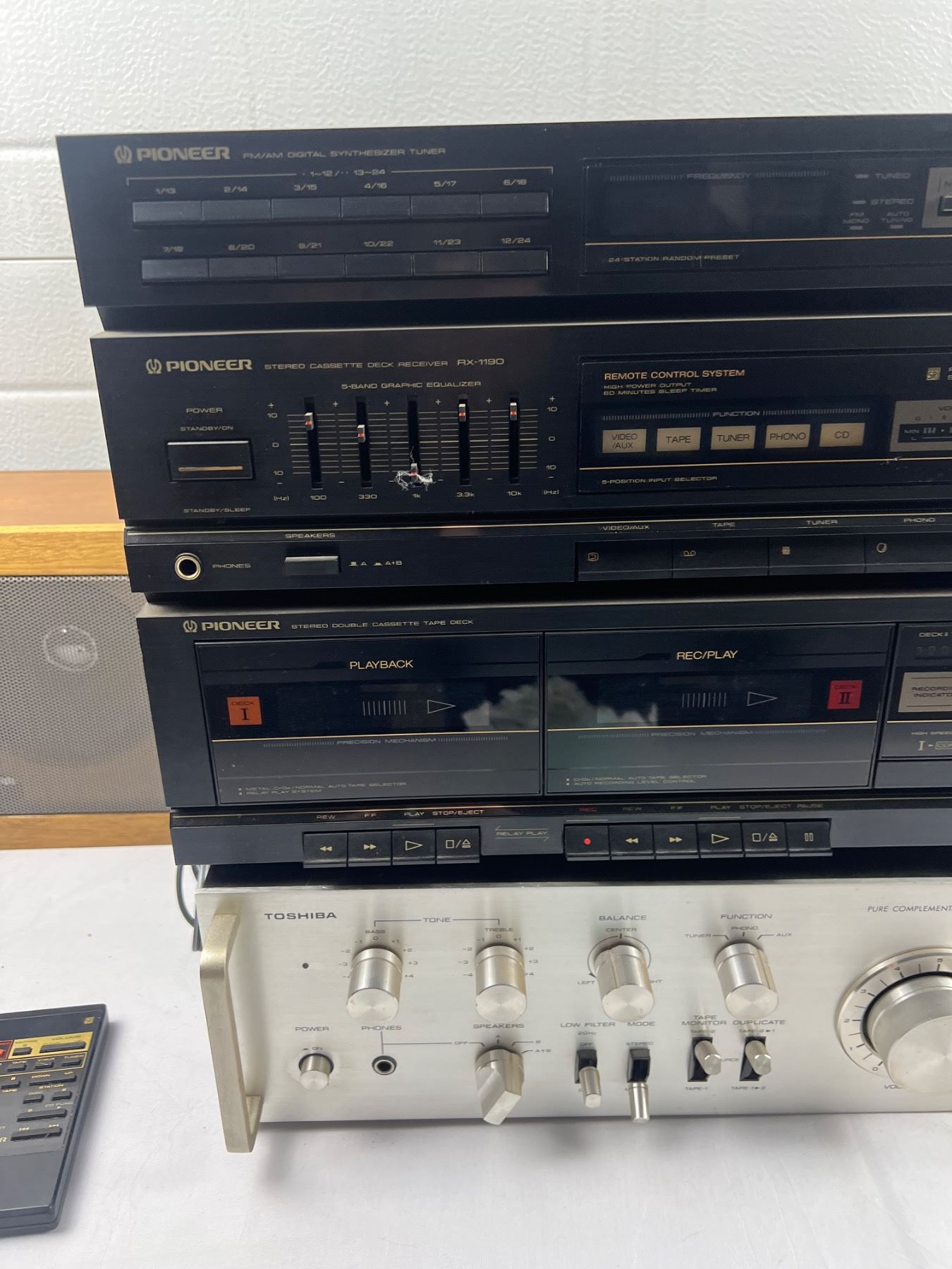 Includes Pioneer and Toshiba, one remote, both power on, speakers not tested