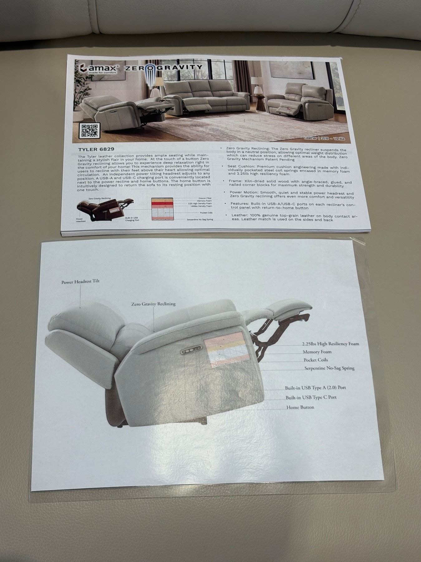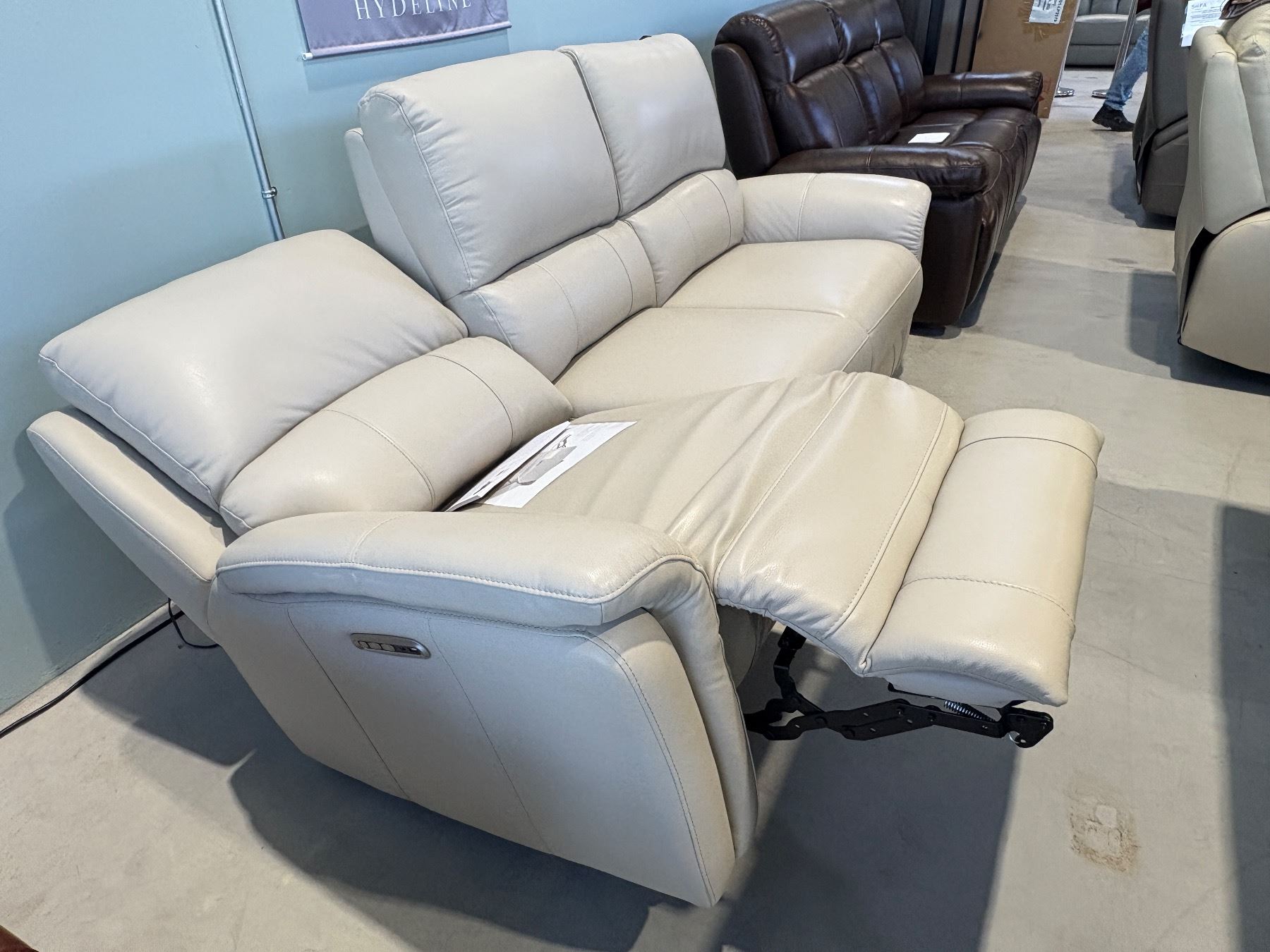 Lot 2 New – Power Reclining Genuine Leather Sofa with Power Headrest – Retail: $3,599