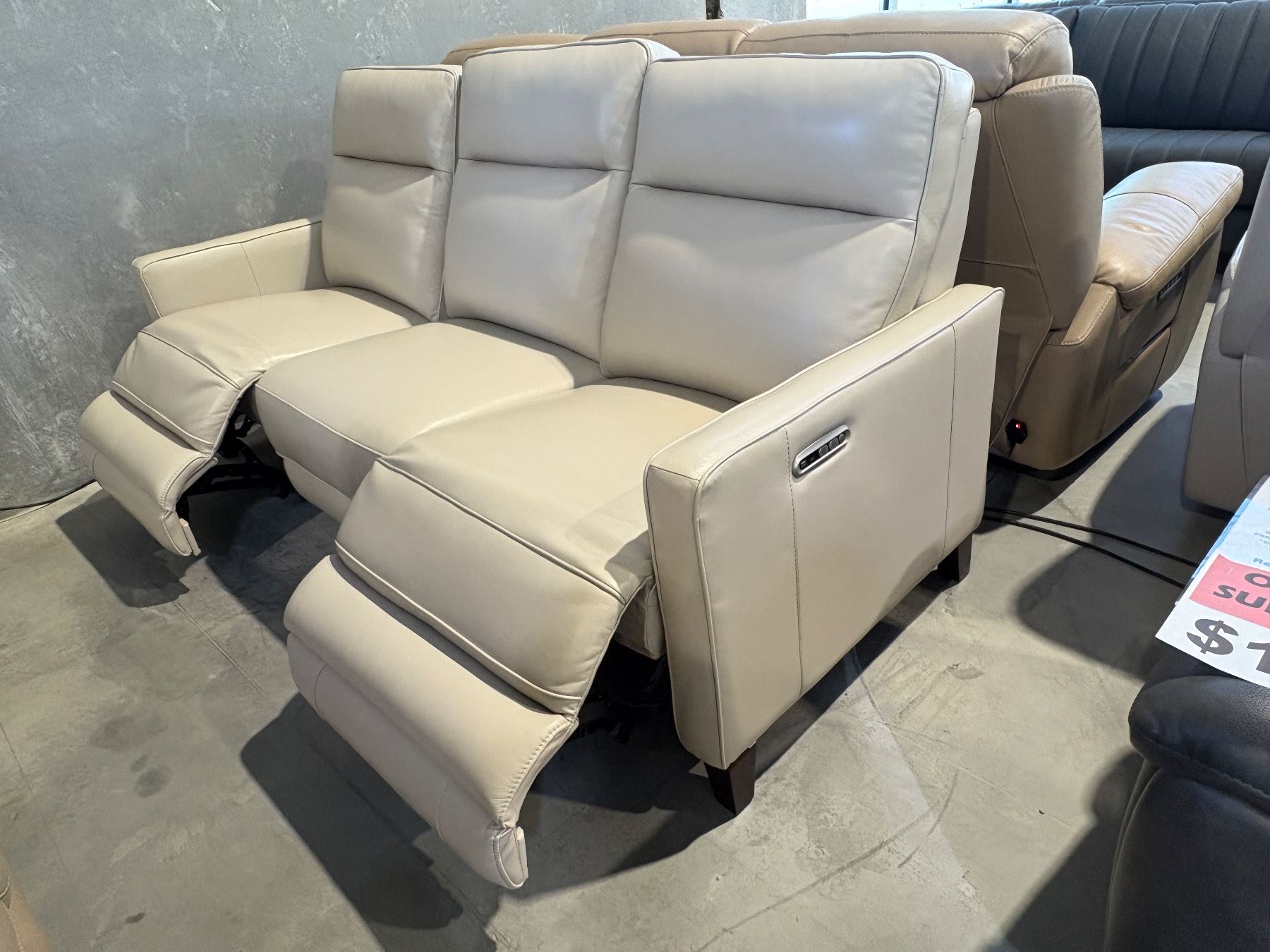 Lot 11 New – Power Reclining Genuine Leather Sofa with Power Headrest – Retail Price: $3,