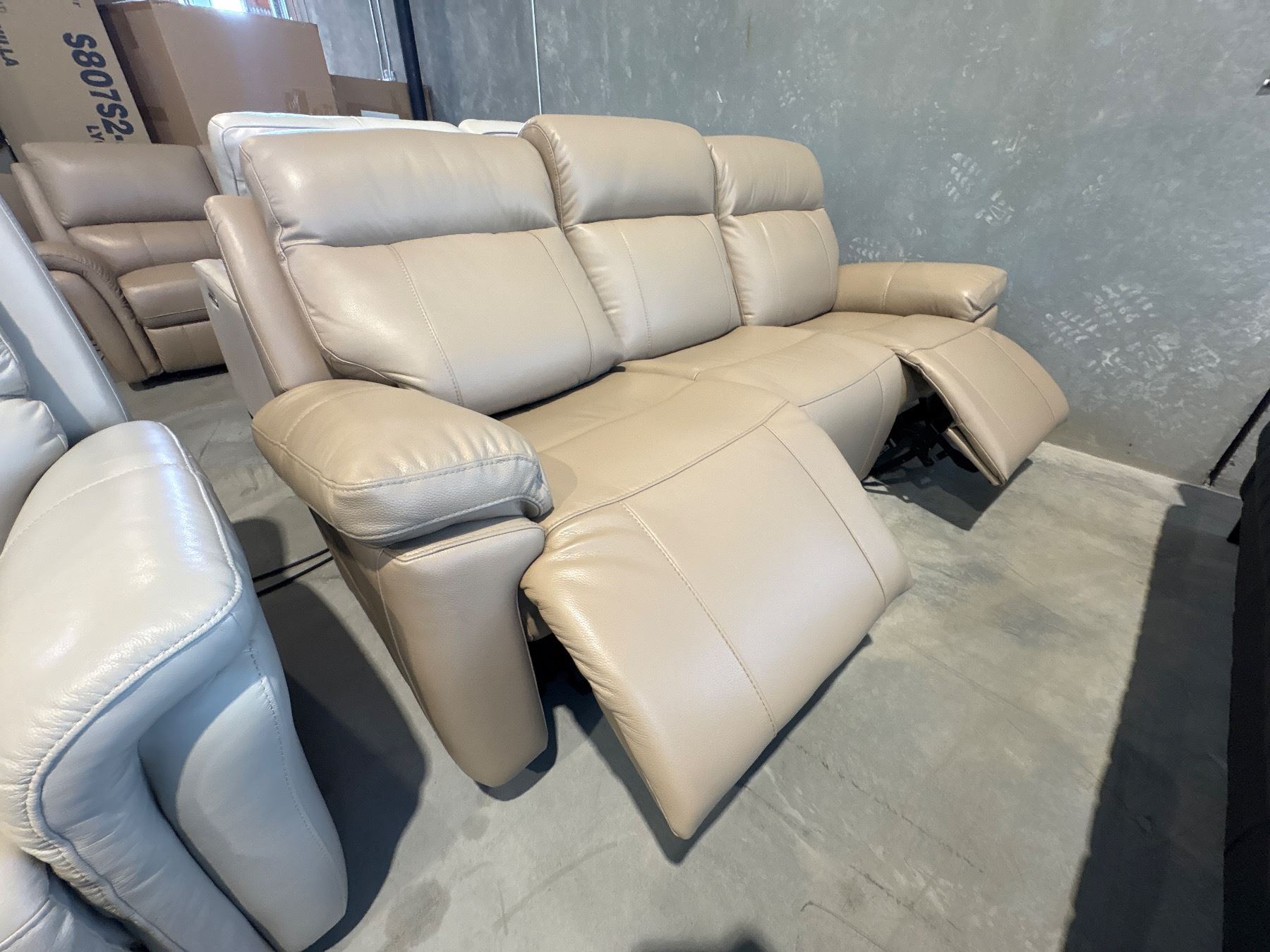 New – Power Reclining Sofa with Power Headrest and Power Lumbar – Retail Price: $4,799