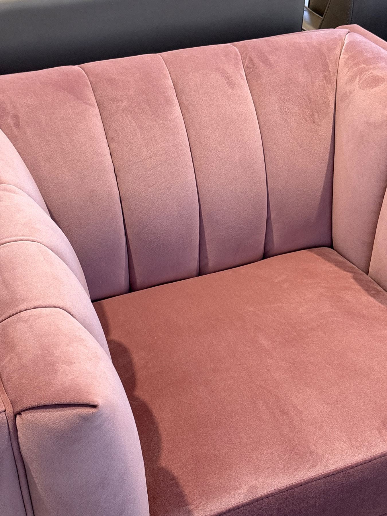 New – Designer Fabric Coral Chair in Plush Pink Velvet with High Density Memory Foam Cushions and Kiln Dried Solid Wood Frame – Retail Price: $1,499