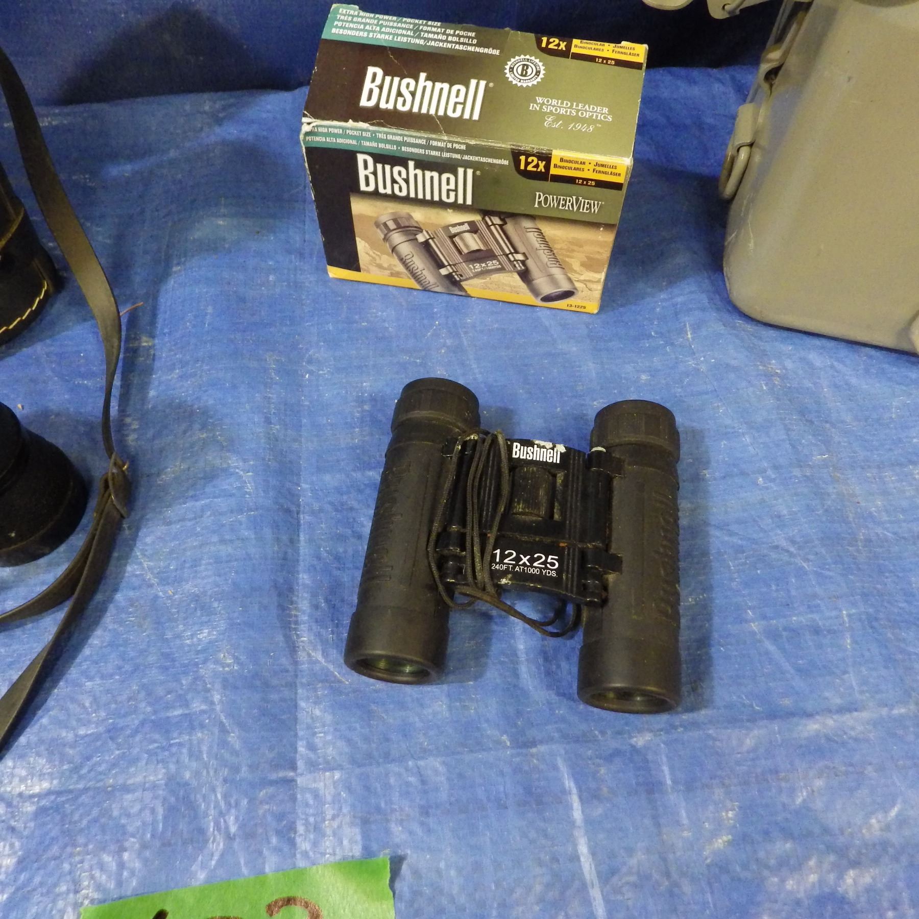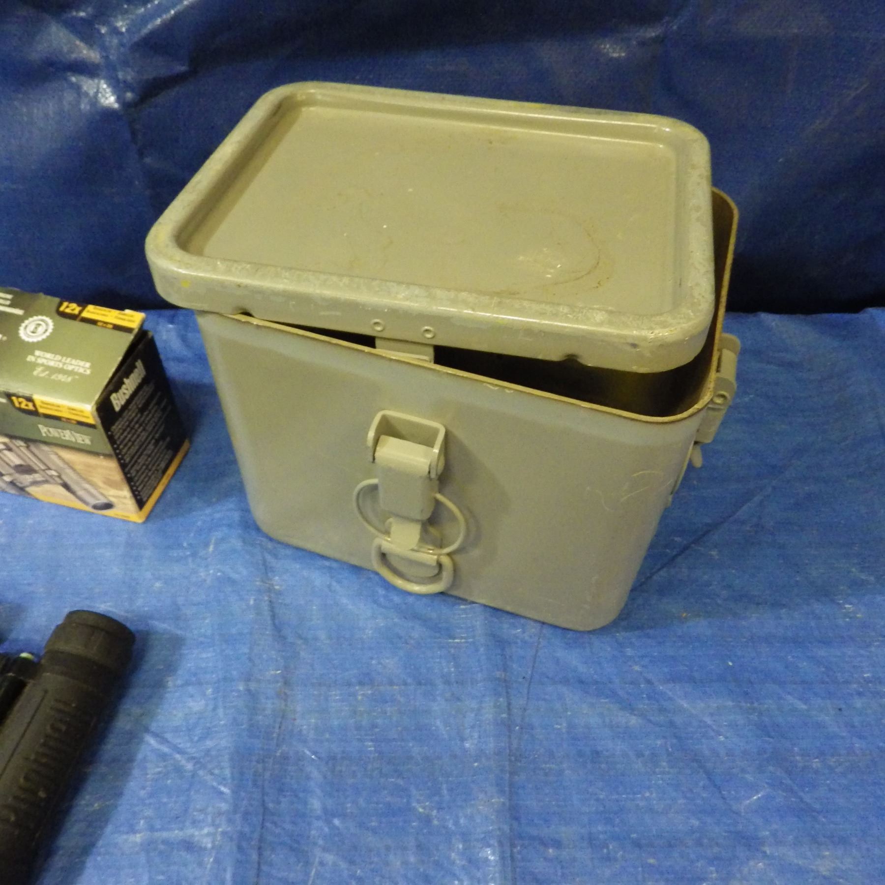 BINOCULARS AND METAL CONTAINER