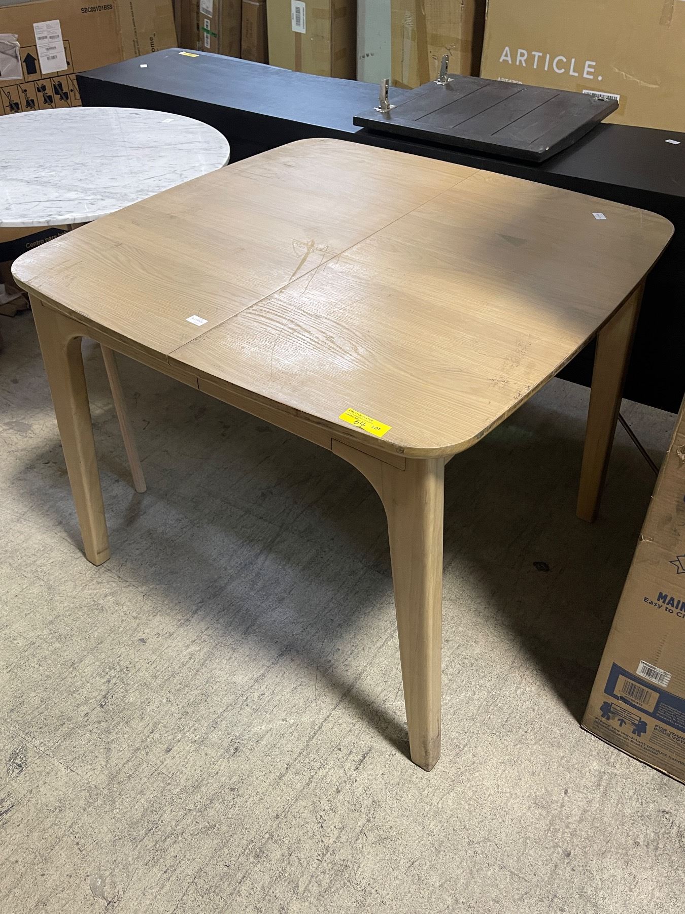 Lot 64 Oak Finish Extenable Dining Table, H30" x 37.5" x 37.5" (unextended size), with table-top wear