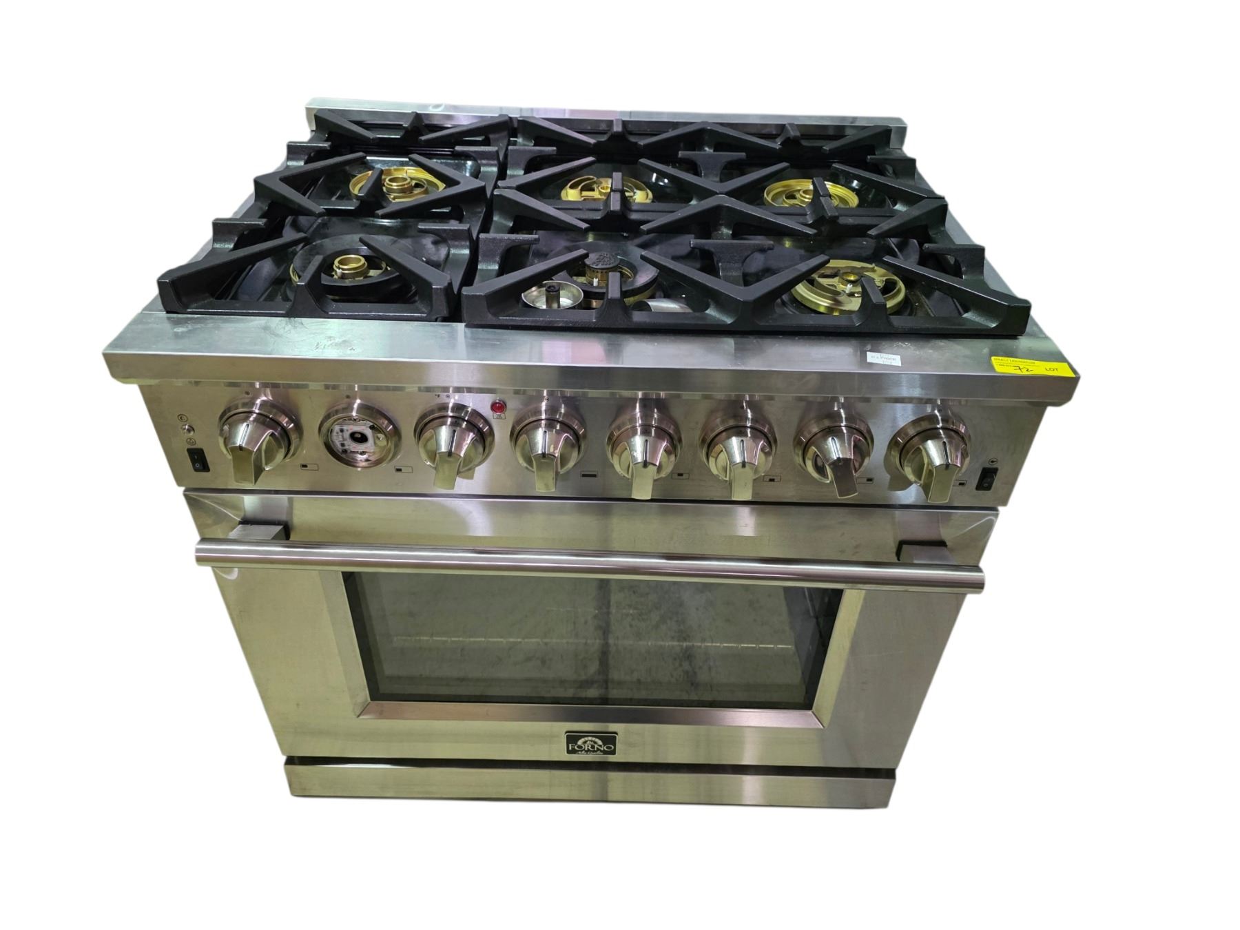Lot 72 Forno Capriasca 36" Freestanding Dual Fuel Range - RV: $2299 CAD - 1 control knob and some burner ca